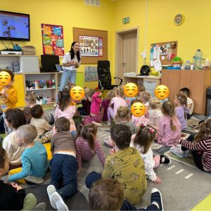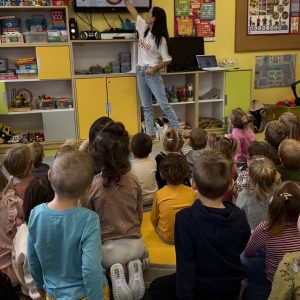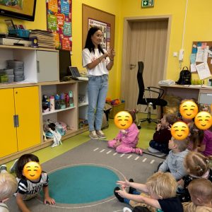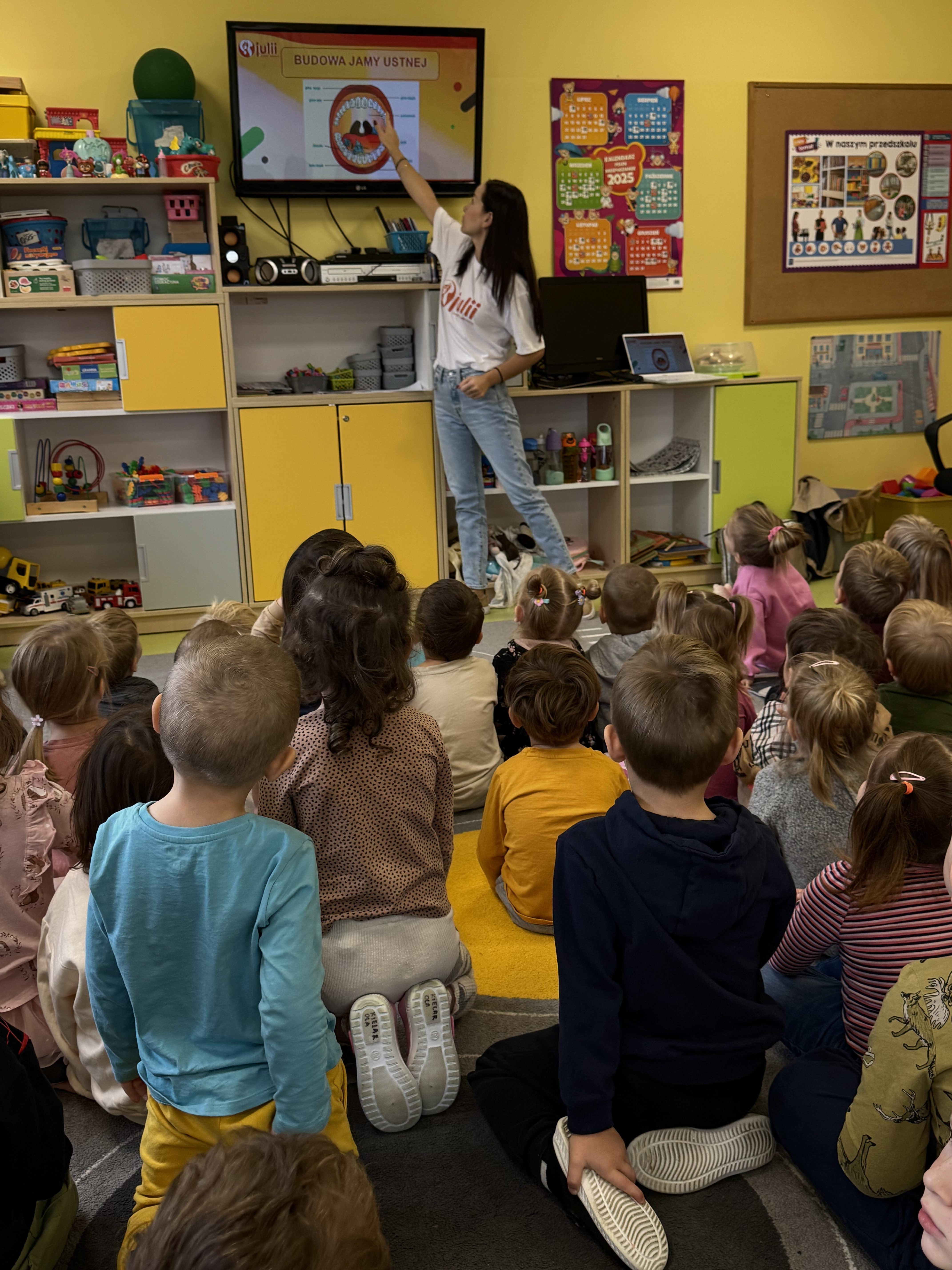 Podczas spotkania Klaudia opowiadała przedszkolakom o tym, jak dbać o ząbki i dlaczego codzienna higiena jamy ustnej jest tak ważna. 🪥✨